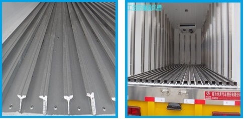 通风系统:底板通风槽、厢内四周通风隔板。 增强制冷机的冷风循环效果,安装通风槽后货物不会紧贴厢体侧壁与厢底,通风槽材质为铝合金型材,结构简单易清洁。运输肉类或者药品物品、箱体物品,需要加装通风槽,防止变质。 |