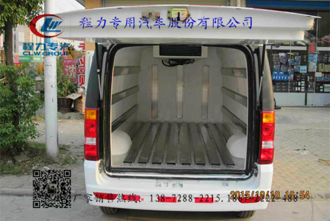 1.底盘配置:采用东风小康汽车有限公司EQ5026XXYF1整车面包车身,配置重庆小康动力有限公司DK15-09汽油发动机,109马力,国五排放标准,5档变速箱,有动力转向,驾驶室原厂空调,轴距3050mm,总质量1970kg,2人座位额载530,5人座位335kg,整备1310kg。 2.上装配置:冷藏厢内部有效容积3.6立方,厢体蒙皮内玻璃钢,外不锈钢,花纹铝底板,8cm聚氨酯保温,不锈钢门锁件,配后双开门,安装-18度制冷机组可选。 3.其他说明:该款面包冷藏车有2人座位和5人座位两种,非常适合做药品,疫苗冷藏运输车,锡膏,熟食等城市冷链快递等用途,适合城市与机场对接冷链快运,最高时速高达135公里每小时