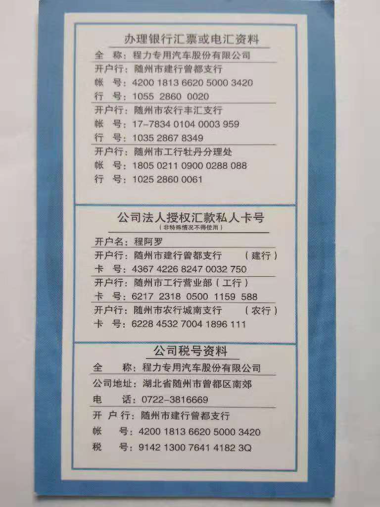 湖北程力公司财务重要通知:本月20号以后暂停开票,增值税税率,四月起将由16%改成13%。请:之前与我司有合同16%税率发票的客户,将款项转入我公司账户,以便我司近期将16%发票开给您。 合同签约未付款或只付了预付款的,发票税率自动改成13%,我司不承担差价!减税为国家惠民政策,企业进、销项及纳税率皆下调,并没有产品降价的说法。请大家理性认知国策、多多体谅企业供应商。 |