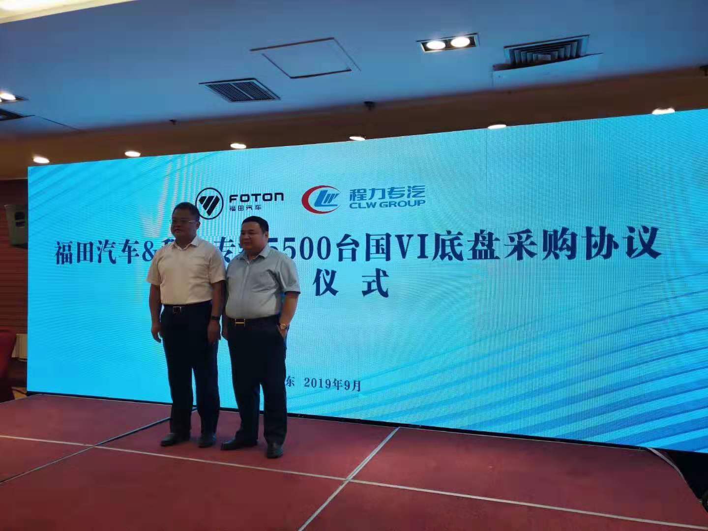 2019年9月6号.中国.山东诸城。福田汽车与程力专用汽车股份有限公司(程力专汽)战略合作沟通交流会。福田汽车与程力专用汽车股份有限公司签约5500台国六汽车底盘…