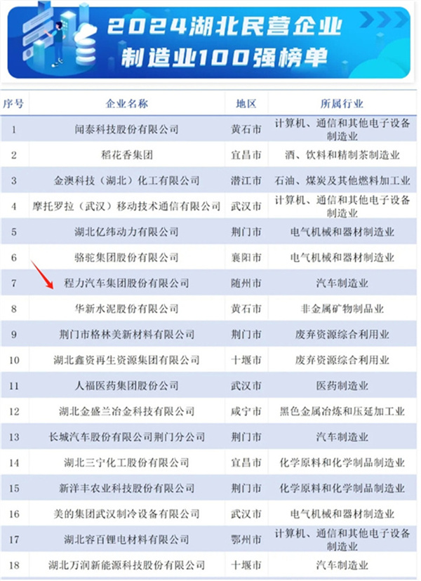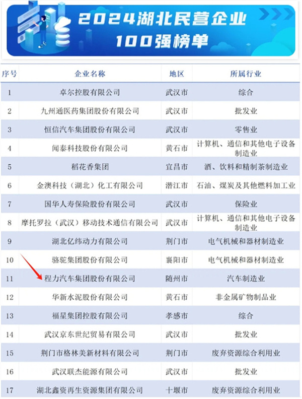 导读:今天(10月31日)湖北省工商业联合会发布2024湖北民营企业百强系列榜单这是湖北连续14年发布民企百强榜单,湖北发布2024湖北民营企业百强榜单,程力汽车集团位列…