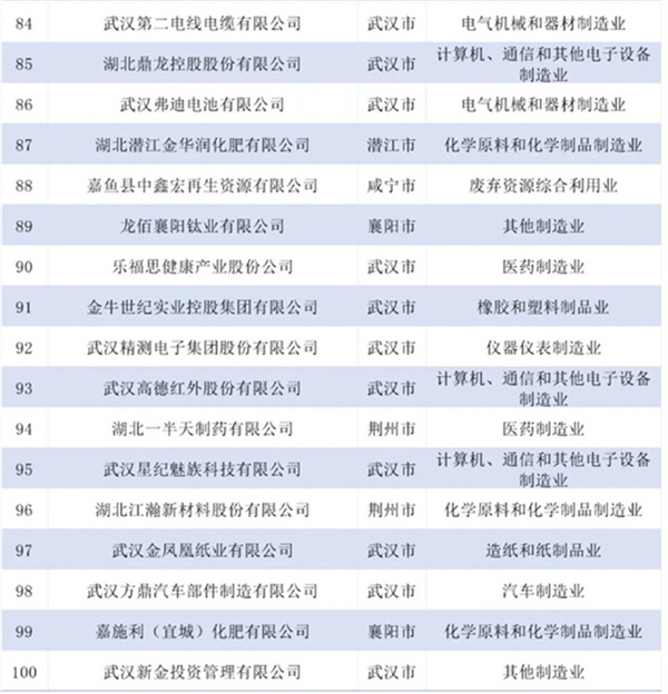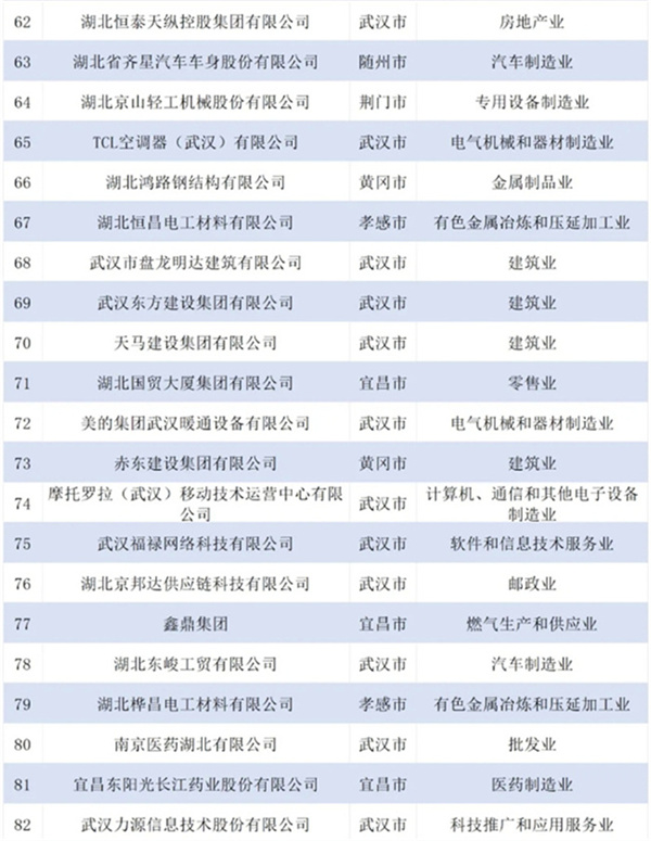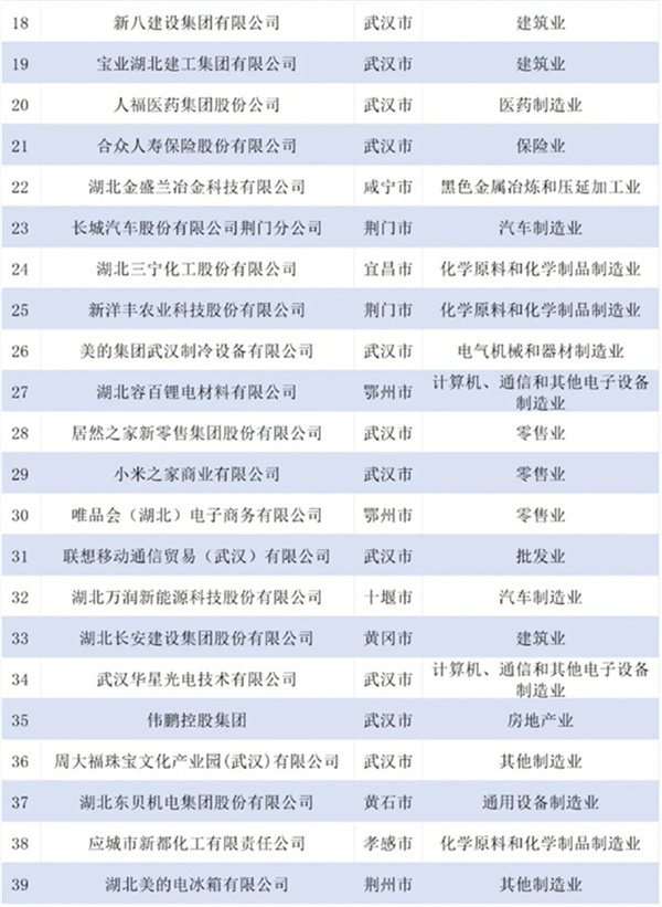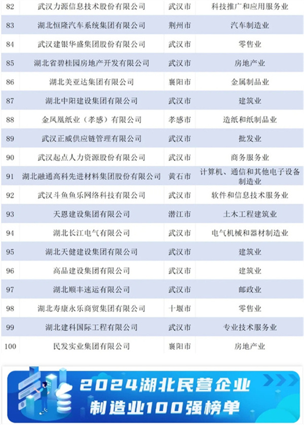 2024湖北民营企业百强榜单发布