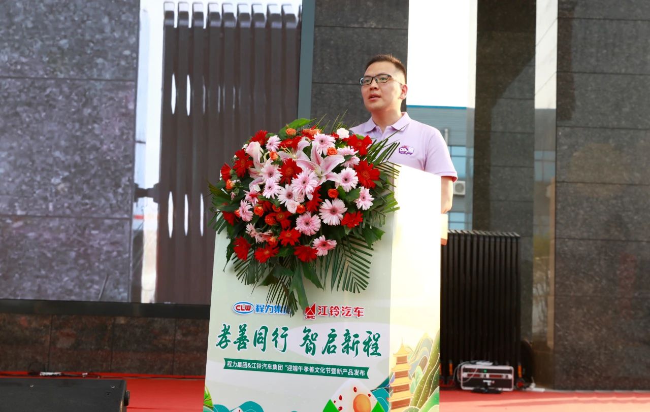 程力汽车集团副总经理刘峰(左一)、倪文涛(左二)、倪文进(左三)及江铃销售有限公司服务管理中心总经理张平(左四)、江铃销售有限公司传播管理中心总经理魏喜乐(左五)前排就坐。鼓槌落下,如惊雷唤醒山河 中国智造享誉世界,程力品牌蜚声海外,《中国龙》的雄浑鼓点震动大地,鼓声擂动孝善心,蓝焰点燃民族工业梦。 程道国主席登台宣讲中华民族孝善文化的传统美德,并宣告:"迎端午孝善文化节暨新产品发布联欢晚会,正式启幕! 程主席掷地有声的殷切话语,仿佛是开启新征程的号角,吹响了孝善文化与科技创新的时代强音!“以孝治企,以善经商”的企业心声,回荡在程力大舞台,这不是口号,而是程力二十多年的实践总结;从对员工父母关爱到社会公益捐赠,孝善文化早已融入了企业的血脉。 江铃销售有限公司常务副总经理李闯致词,从古代贤哲,到当代孝善楷模人物,“孝”与“善”始终是中国人的精神底色。孝善文化也同样哺育和促进了程力集团与江铃汽车集团的合作共赢,李总的讲话为双方的共同进步,绘就了江铃与程力“技术赋能、合作共赢”的宏伟蓝图。 本届全球首届孝善文化节暨新产品发布会,程力汽车集团股份有限公司董事长程阿罗被广大员工集体推荐为孝善人物之首,程董在致词中坦言,程力和江铃一家亲,是肩并肩的可靠伙伴,“孝善”文化已贯穿于全产业链合作始终。正如端午艾叶的芬芳,寄托着对亲人的牵挂与敬仰,程力集团一直以来,将孝善文化作为企业崛起之魂,强壮之基石,坚定不移的弘扬中华传统美德,增强企业文化自信,为公司的跨越式发展赋能。 程力集团董事长程阿罗作为15位孝善楷模人物之首的重要代表,他不仅在家庭中践行孝道,更将这份爱心与责任延伸到企业和社会,在疫情防控、抗洪抢险、雪灾地震等危急时刻,程董总是奋勇向前挺身而出,奔赴在现场第一线;在“扶危济困”、“万企兴万村”、红十字会捐赠的公益行动中,他带着团队,多次到访随州市曾都区养老院、广水市双塘村、随县万店镇,恩施宣恩县、贵州剑河县,先后慰问孤寡老人及捐款捐物达数千万元,给予孤寡老人温暖关怀,成为众人敬仰的孝善楷模道德标杆;程董在家庭中,用心孝敬父母,以长为尊,谦逊尽孝,被群众誉为大善人大孝子,是集团公司广大员工学习的榜样;而15位孝善楷模人物的故事,如同15面镜子,映照出孝善文化在程力集团万开花结果的部分精彩图腾;孝善文化的强大基因,在企业发展中,已根深叶茂茁壮成长。 |