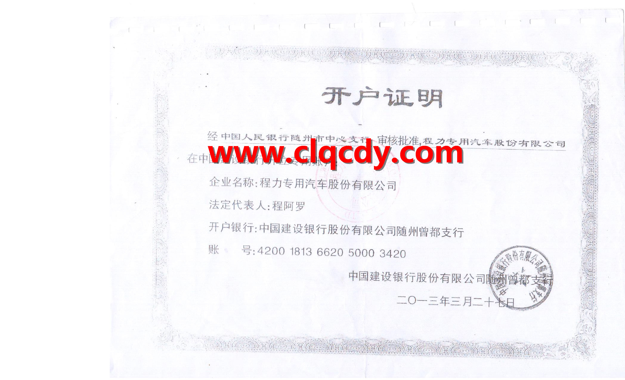 湖北程力营业执照、组织机构代码、税务登记证、开户证明。