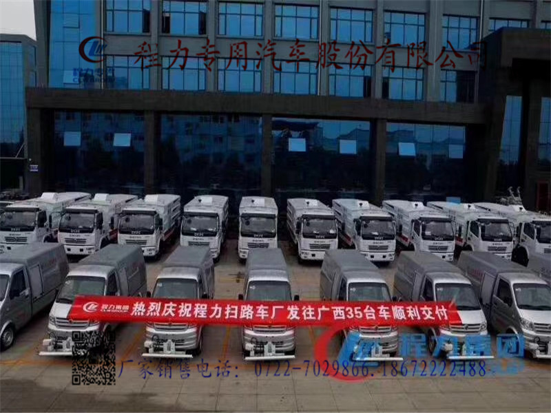 广西贺州市采购湖北程力的洗扫车、清洗车32台顺利交车