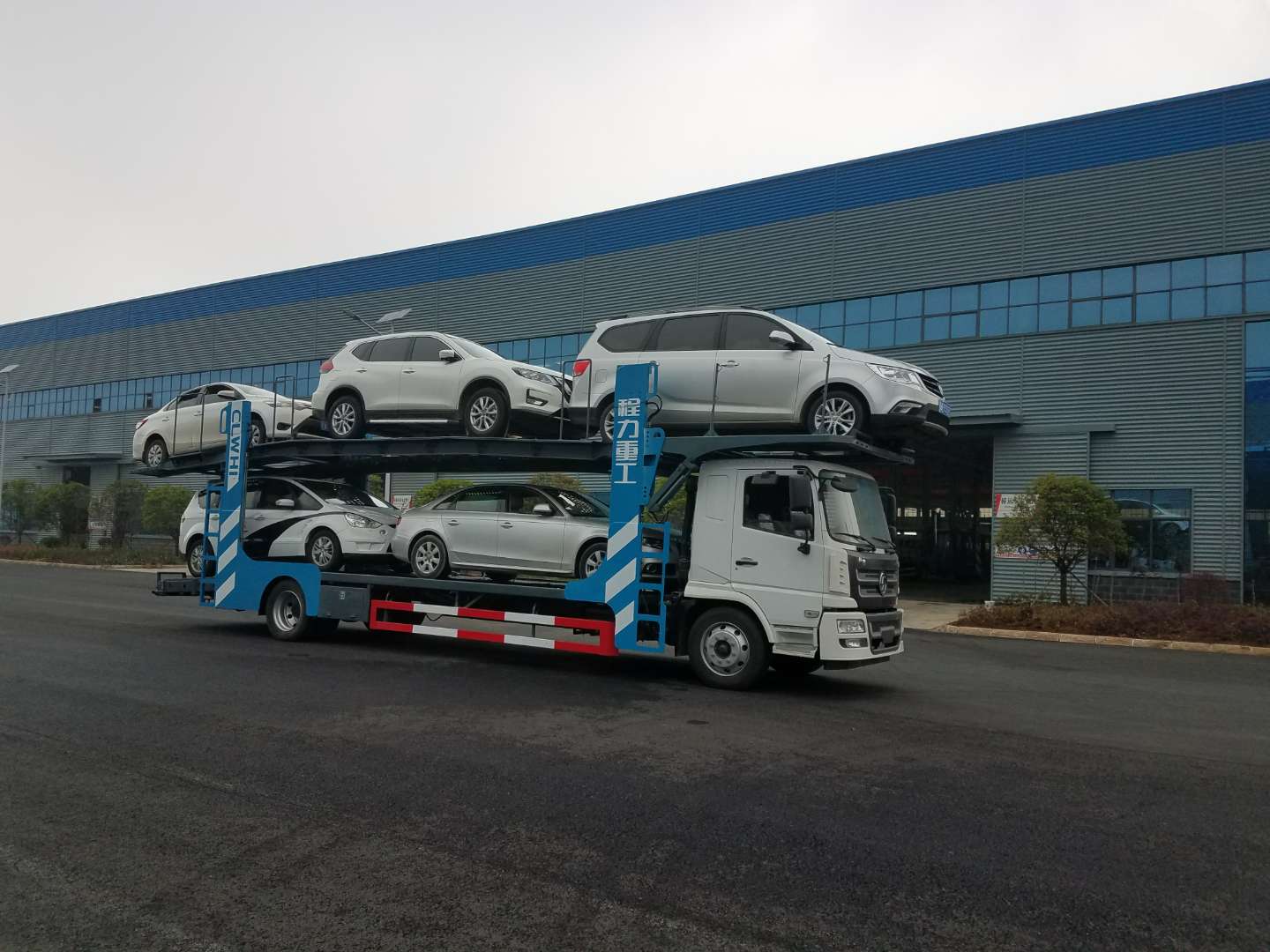 湖北程力陕汽轩德轿车运输车(轿运车)详细资料 湖北程力专用汽车股份有限公司积极响应国家新GB1589-2016法规,融合欧美成熟技术优化开发的“程力威”牌轿运车投放市场。替代老式不合格的单、双 排轿运车。产品特点:1、装载量大,一次性装载5位4.5米以下轿车,前后分离,前车可独立运营2、独特液压设备,液压缸举升实现各装车平台的升降和 定位。3、行驶更安全,符合最新GB1589-2016标准,底盘重心低,弯道通过性好,燃油更少。 整车采用优质武钢Q235A/Q345B型钢制作. 湖北程力公司自有生产车间和生产资质,专业制造销售车辆运输式半挂车,6车位8车位中置轴轿运车,欢迎来厂参观洽谈。 车型特色: