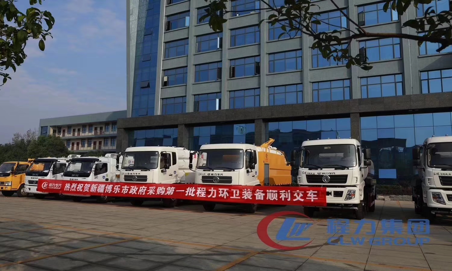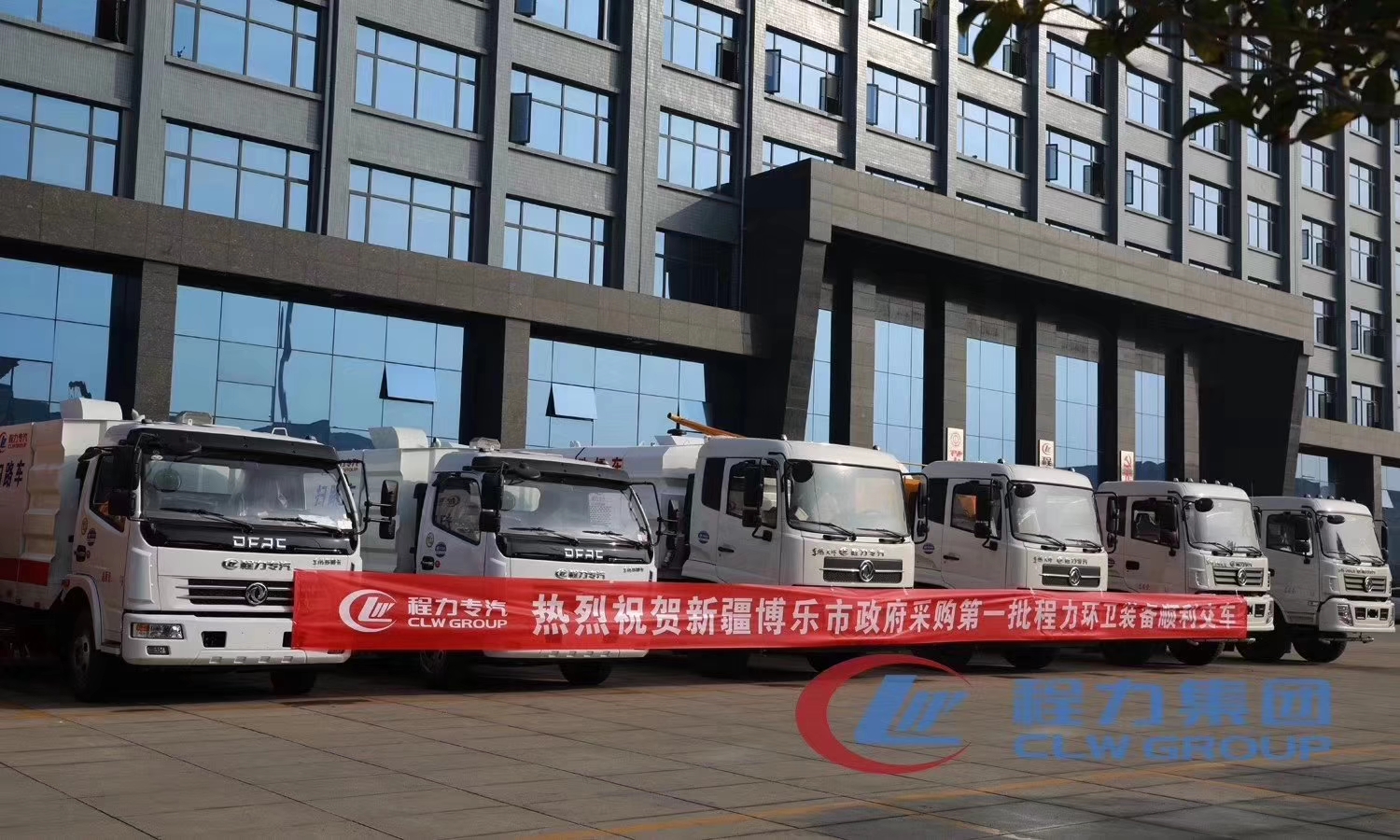 新疆博乐市政府采购湖北程力公司第一批环卫车顺利交车