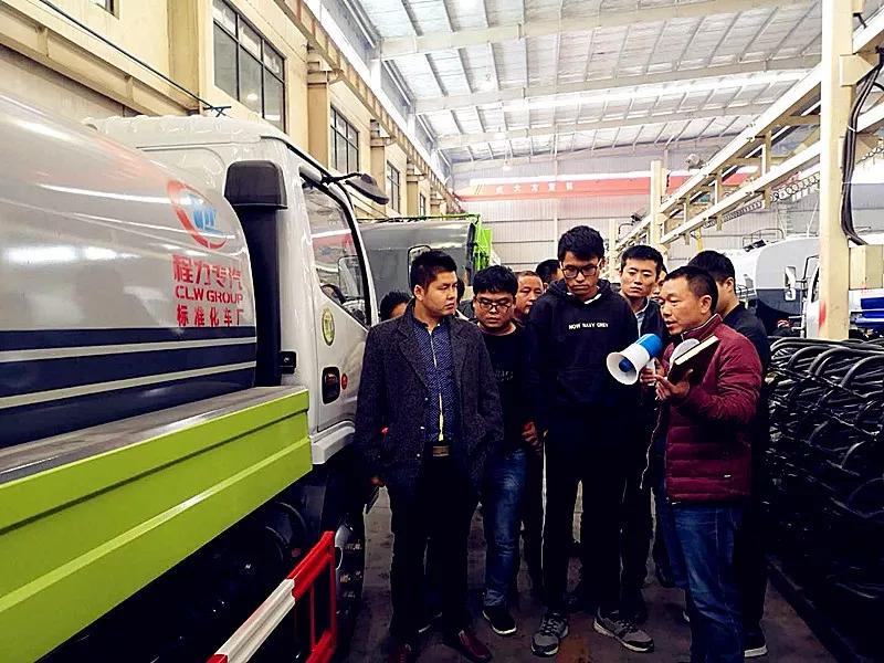 程力环卫车标准化厂王成厂长向学员们讲解程力新标准水车的生产工艺流程。