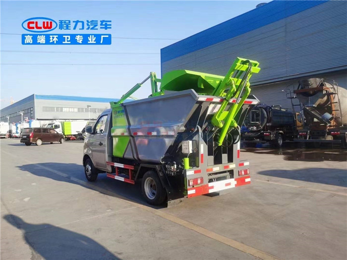 湖北程力国六长安后装高位挂桶无泄漏垃圾车程力威牌CLW5030ZZZ6SL型(后单轮)自装卸式垃圾车CLW5031ZZZ6RL型(后双轮)自装卸式垃圾车CLW5030ZZZSC6型自装卸式垃圾车厂家配置: 国六长安后装挂桶无泄漏垃圾车国六长安3.5方后挂式压缩垃圾车图片价格,采用长安2990mm底盘制作,国六排放,汽油发动机112马力,5档变速箱,175R14LT轮胎,后装挂桶垃圾车,挂240升国标方塑料桶,带刮板,滑板,带压缩,驾驶室内外操作. 高位挂桶垃圾车主要性能及特点: 环保性:采用全封闭箱体,带密闭式后门,垃圾的密封运输,杜绝了垃圾和污水沿途撒漏的现象,避免了运输过程中的二次污染。 高效性:采用结构简单,性能可靠的上料机构,上料机构单次上料循环时间短,运行效率高。