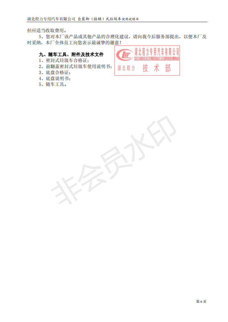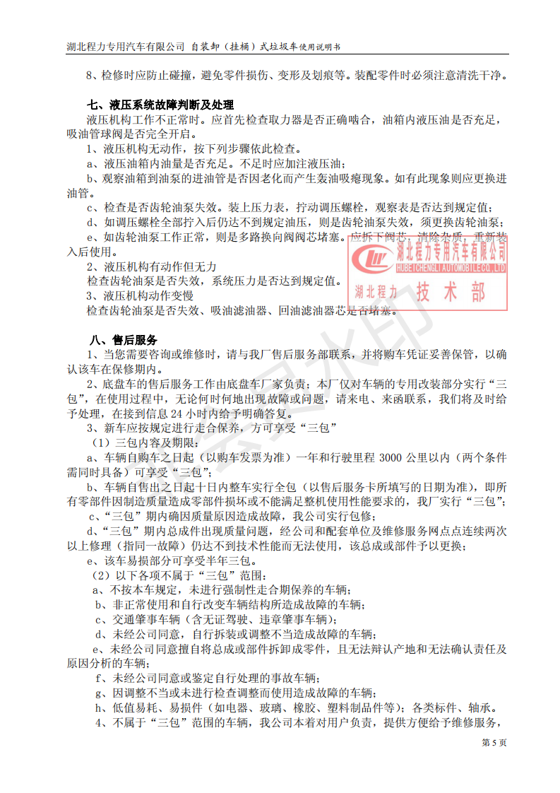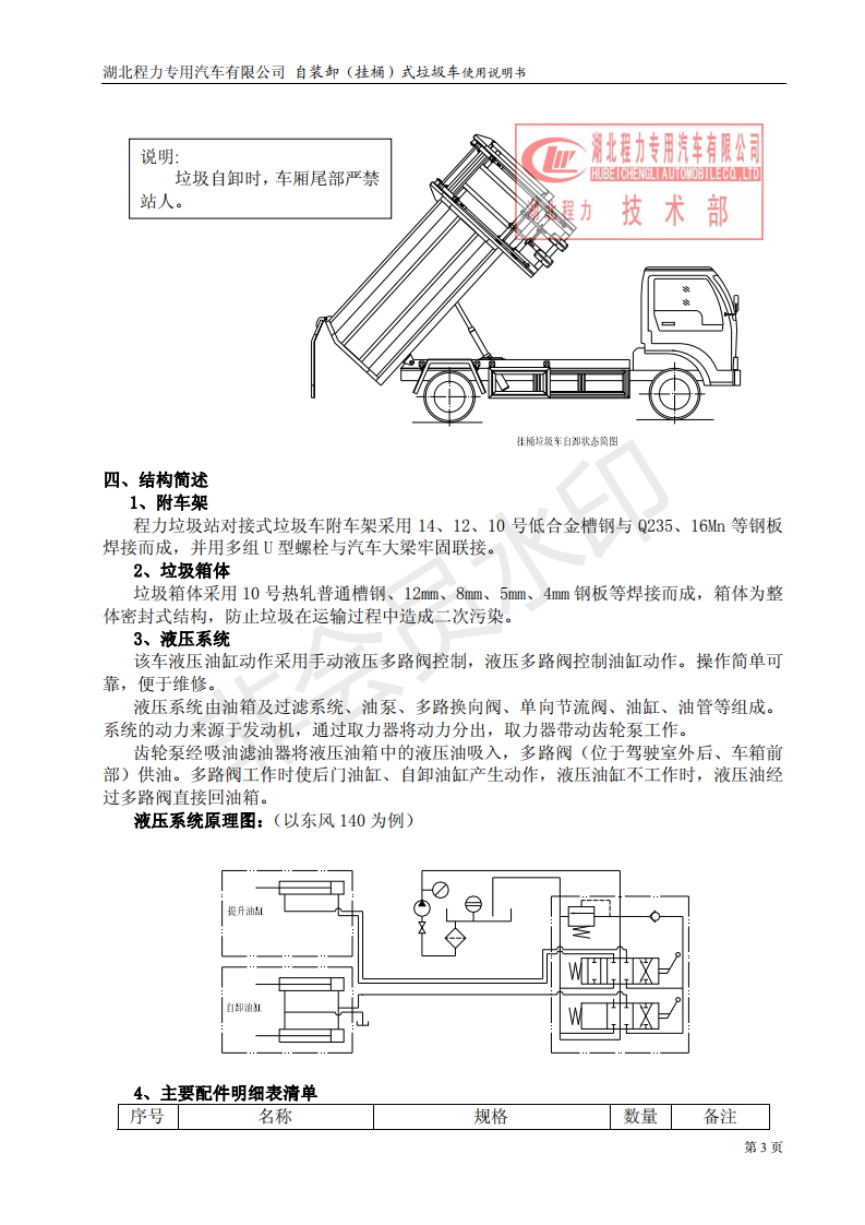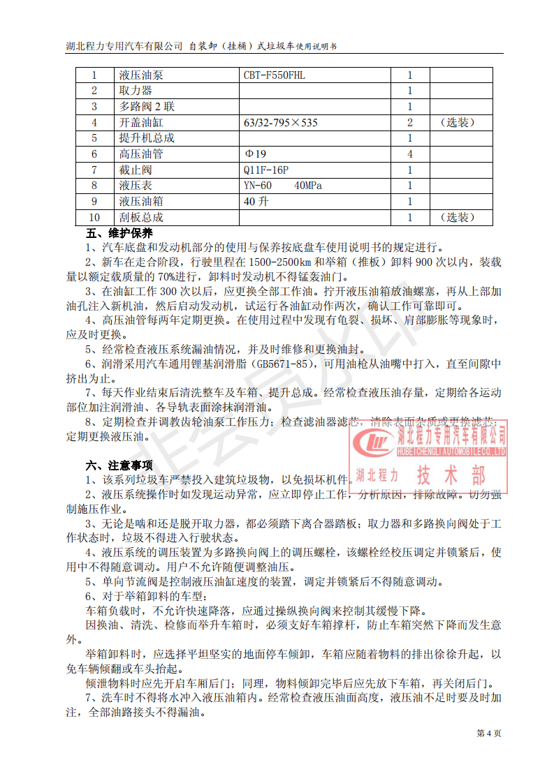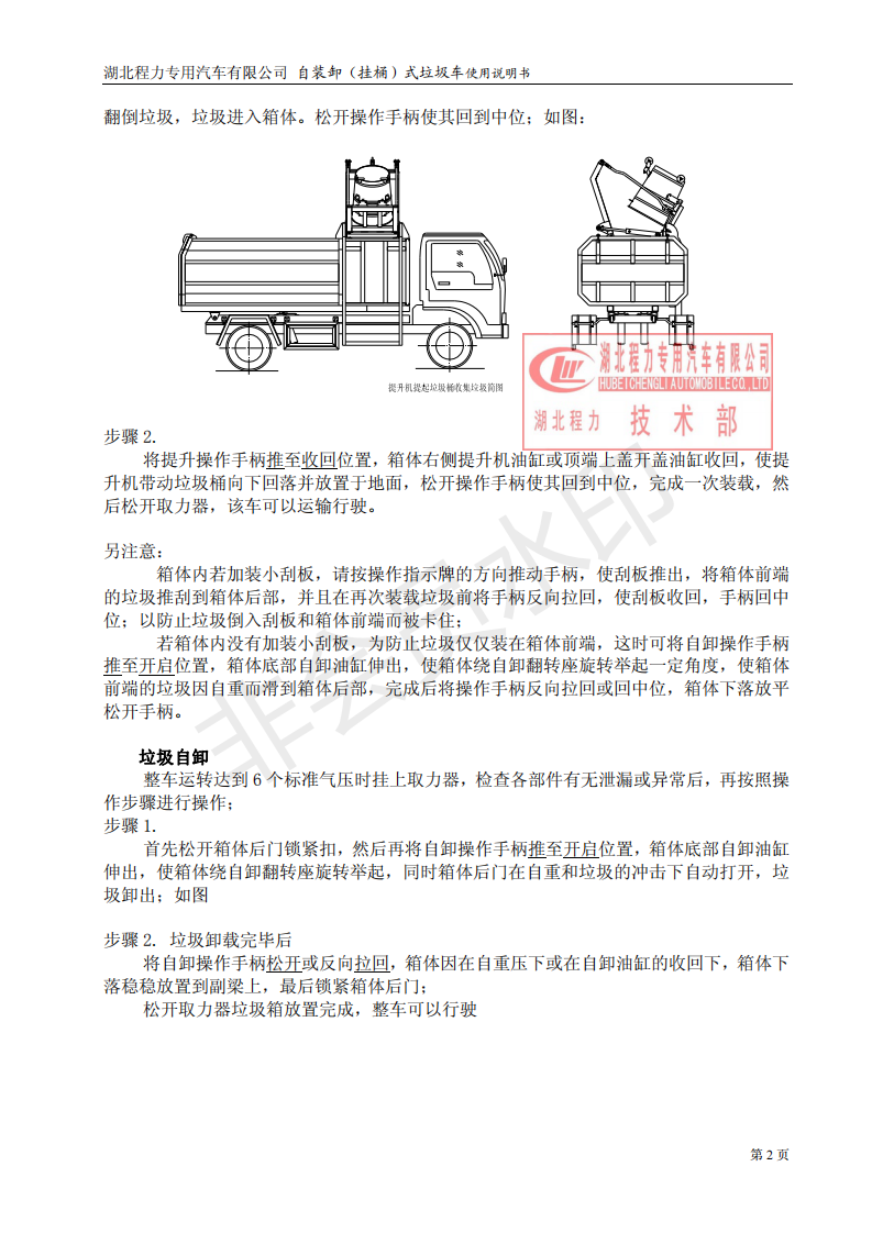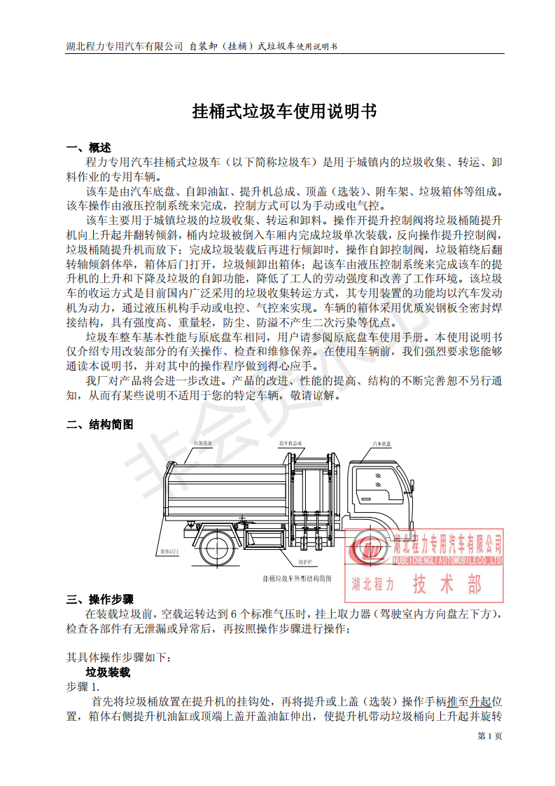 湖北程力自装卸式垃圾车(挂桶式垃圾车)使用说明书