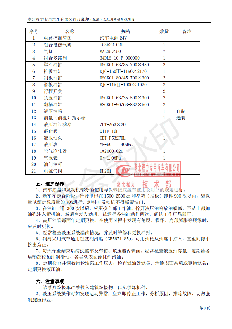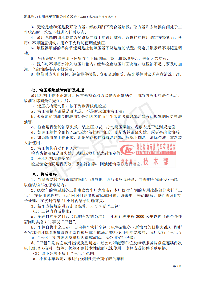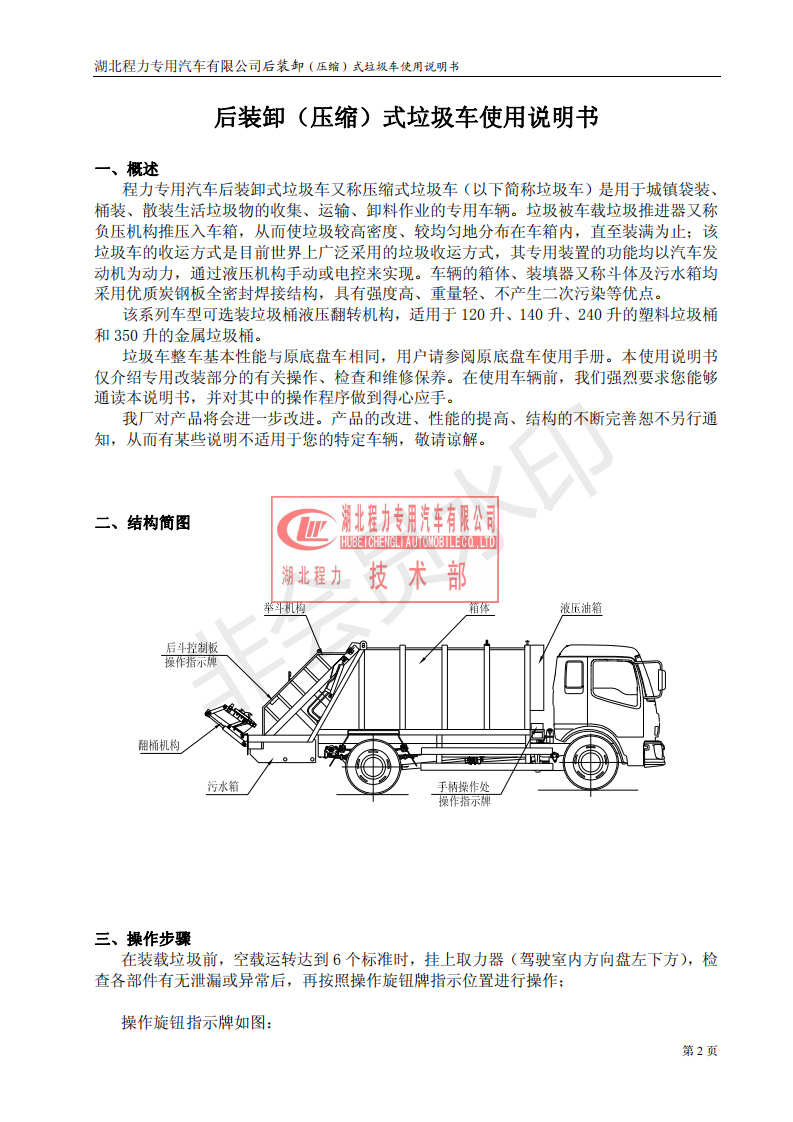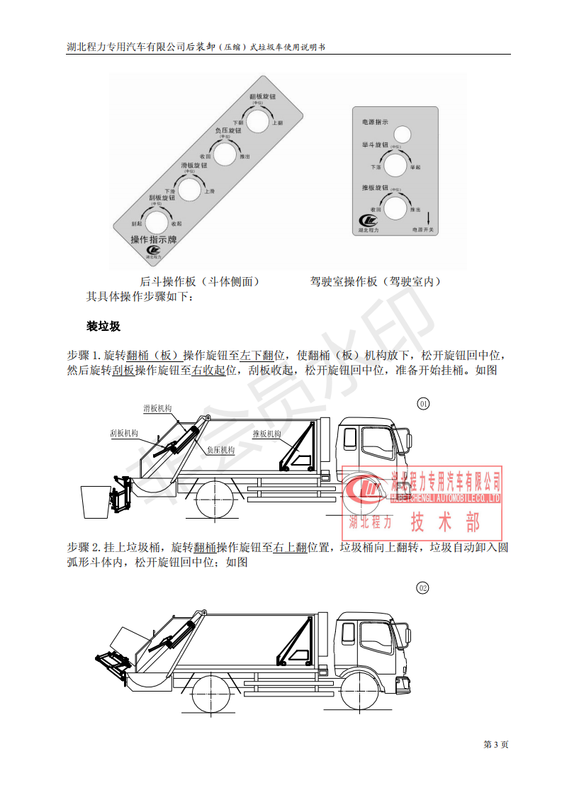 湖北程力压缩垃圾车如何操作使用说明书