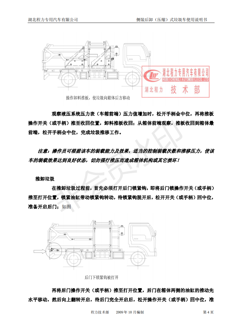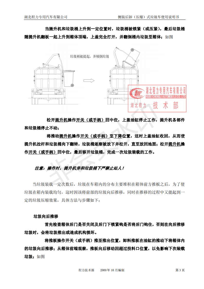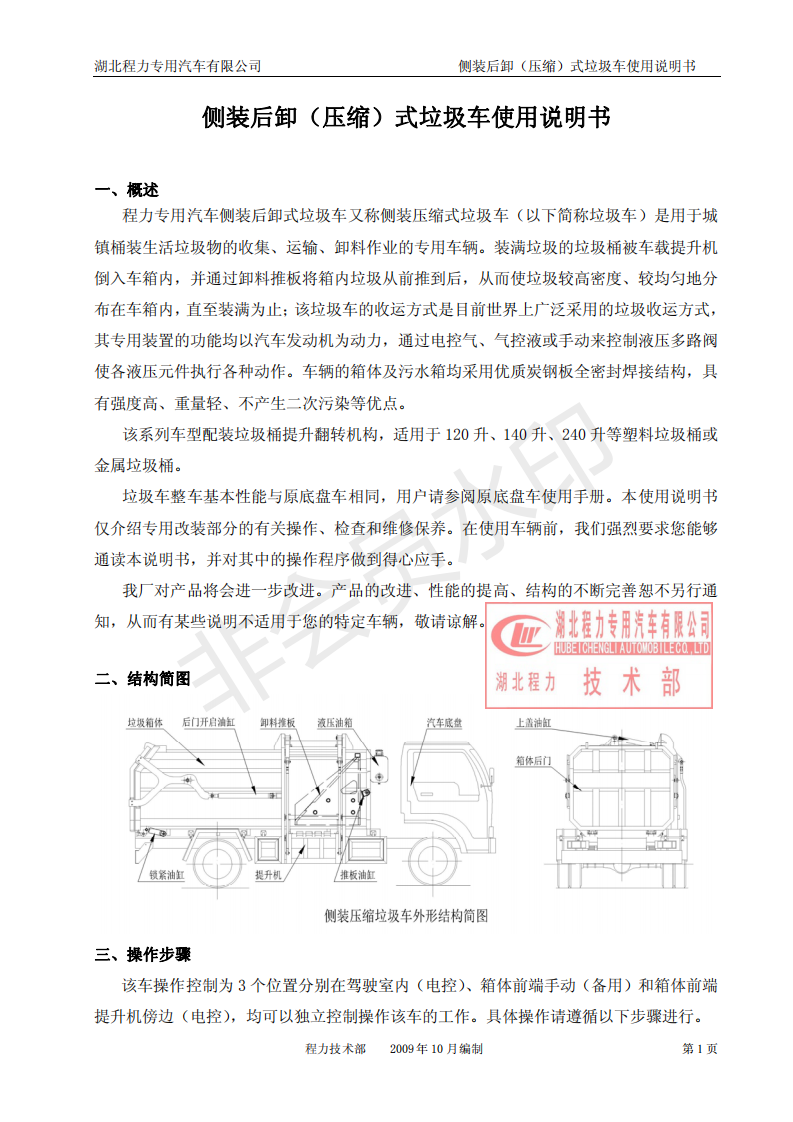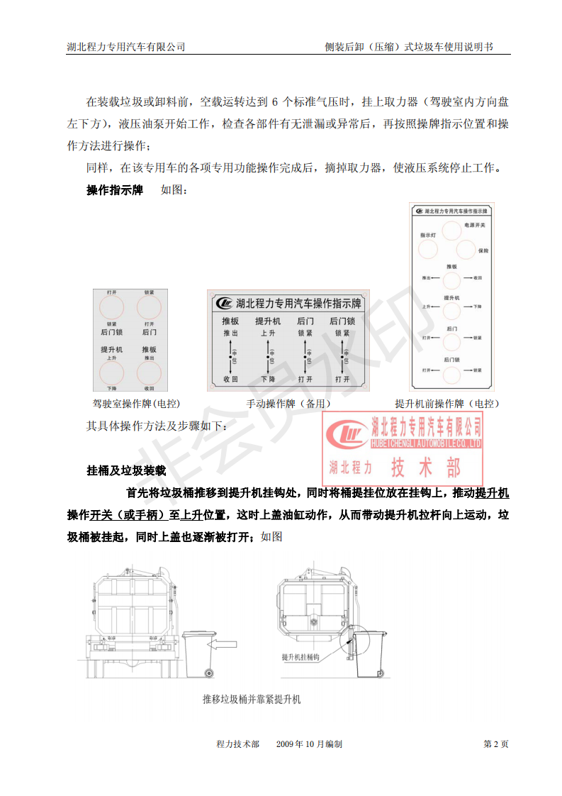 湖北程力侧装后卸(压缩)式挂桶垃圾车使用说明书