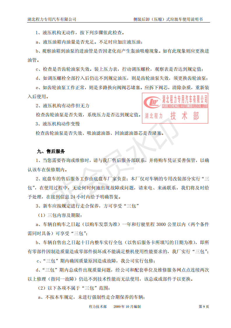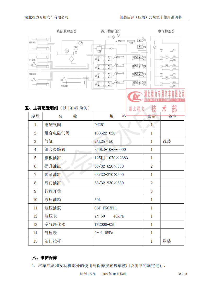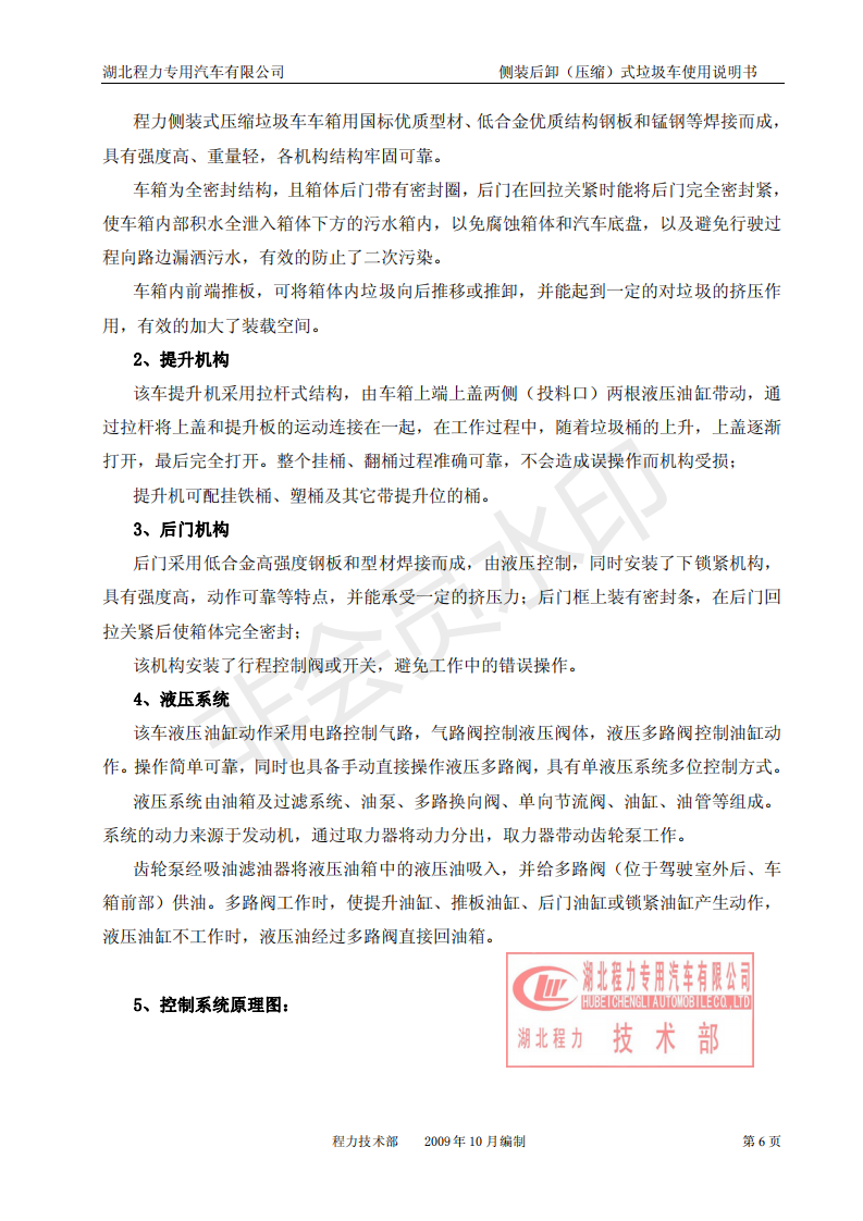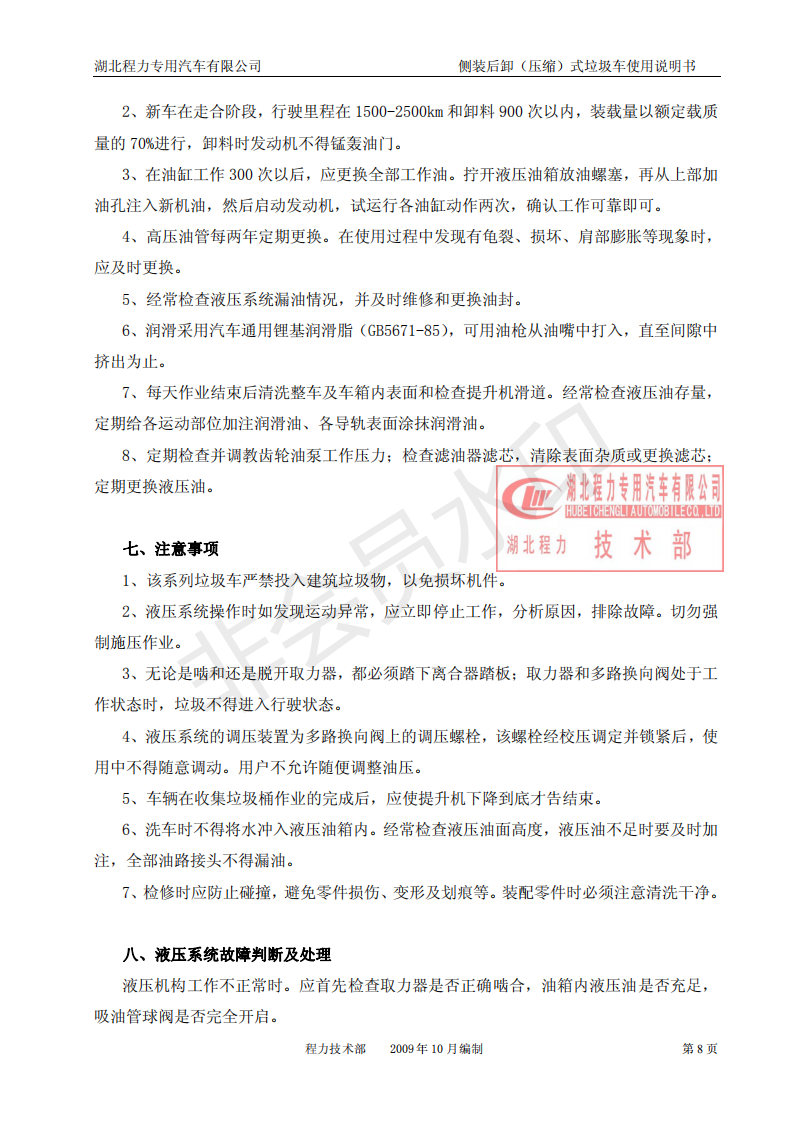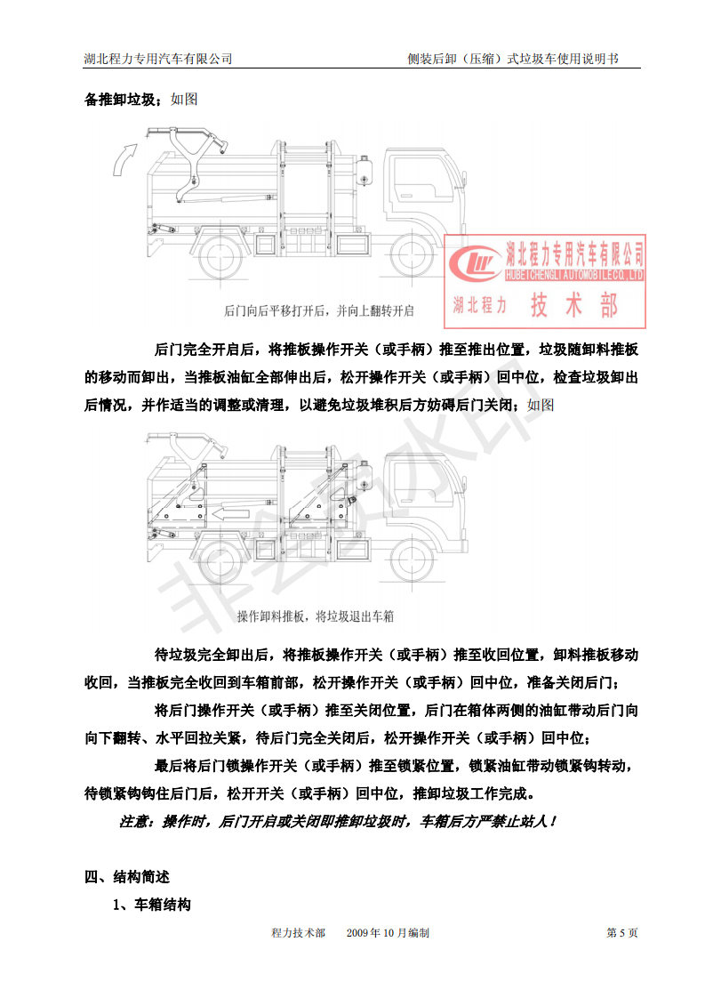 湖北程力侧装后卸(压缩)式挂桶垃圾车使用说明书