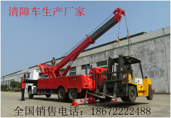 | 清障车作为公司生产的拳头产品,整体开发及其生产制造工艺都相当严格,目前的清障车产品主要有平板清障车、吊托连体清障车、吊托分离清障车等几个大项,落实到具体产品主要有重汽后双桥吊托连体清障车、重汽后双桥吊托分离清障车、东风天龙后双桥清障车、重汽前四后八吊托连体清障车、五十铃一拖二清障车、多利卡一拖二清障车等几个主销产品。