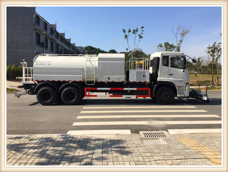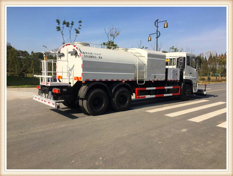 湖北程力国六东风天龙后双桥CLW5250GQXD6大型路面清洗车车辆主要配置 序号 | 项目 | 产品型号 | 备注CLW5250GQXD6 | 1 | 底盘 | DFL1250D4 | 4350+1350,国六排放 | 2 | 取力器 | 4205F85E3-010AS | | 3 | 低压水泵 | 80QZB-60/90 | 天亿 | 4 | 低压水泡 | GP-50 | 天亿 | 5 | 液压系统 | 多路换向阀 | | 6 | 高压水泵 | GTM | 进口 | 7 | 高压喷嘴 | | 美国进口 | 8 | 气路系统 | 阀,气缸 | 以赛亚 | 9 | 副发动机 | JX493ZG3 | 江铃 | 10 | 低压球阀 | | 中联 | 11 | 高压球阀 | | 中联 | 【整车技术参数】 | 产品名称 | CLW5250GQXD6型清洗车 | 产品商标 | 程力威牌 | 总质量(Kg) | 25000 | 罐体容积(m3) | 13.22 | 额定载质量(Kg) | 12665,12590 | 外形尺寸(mm) | 10620,10520×2530×3150 | 整备质量(Kg) | 12215 | 货厢尺寸(mm) | ×× | 轴数 | 3 | 轴距(mm) | 4350+1350,5350+1350,5700+1350,4600+1350,4800+1350 | 底盘型号 | DFH1250D4 | 底盘名称 | 载货汽车底盘(二类) | 外形尺寸(mm) | 9270,9355,10270,10355,10705,9650,9605,9720×2500,2530×3075,3190,3370,3630,3150 | 轮胎数 | 10 | 燃料种类 | 柴油 | 轮胎规格 | 295/80R22.5 18PR,11.00R20 18PR | 排放标准 | GB3847-2005,GB17691-2018国Ⅵ | 发动机型号 | 发动机生产企业 | 排量(ml) | 功率(Kw) | D6.7NS6B290 DDi75E350-60 DDi75E300-60 | 东风康明斯发动机有限公司 东风商用车有限公司 东风商用车有限公司 | 6700 7500 7500 | 213 257 220 | 湖北程力国六东风天龙后双桥CLW5250GQXD6大型路面清洗车多方位图片: