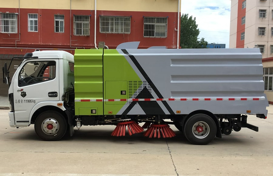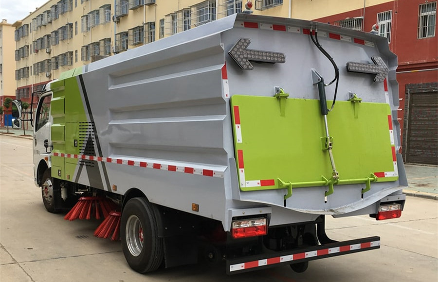 1. 采用吸扫混合的方式收集垃圾,湿式除尘、电液控制的作业方式;在驾驶室内一键自动控制清扫作业。2. 采用“中置四扫盘+喷雾降尘装置+中心隔板+后置吸嘴”的结构布局,让清扫过程中砂石不在飞溅扬尘。随路面自动找平的全浮动式吸嘴,通过性好,清扫效果好,使用寿命长。3. 副发动机与风机之间的传动设置设有自动离合器,可保证副发动机空载启动和停机时与风机的自动脱离,降低了对副发动机的冲击,保证清扫过程的连续性,提高了副发动机的工作可靠性和使用寿命。4. 扫盘有遇障碍自动避让保护功能和自动复位功能,遇到障碍自动回缩,越过障碍自动回位。5. 扫盘转速可根据各种不同的清扫工况来调整转速,能保证在各种污染状况下都有良好的清扫效果选装功能:1. 推雪铲、除雪滚刷、护栏清洗滚刷装置 2. 选装洒水车前冲后洒、浇花浇树洒水炮装置 3. 清扫作业视频监控与倒车影像功能 4. 垃圾箱自洁清洗装置