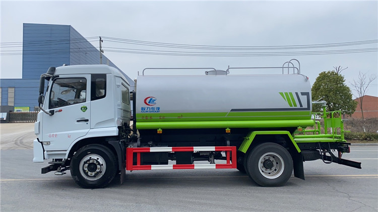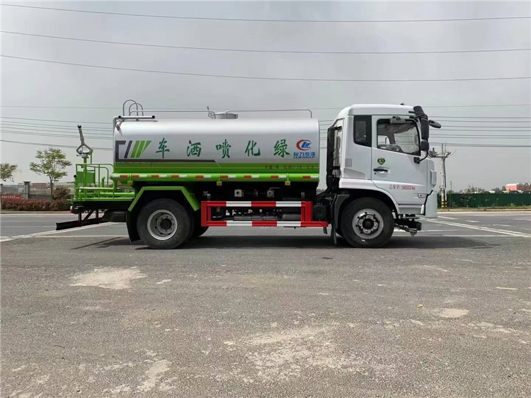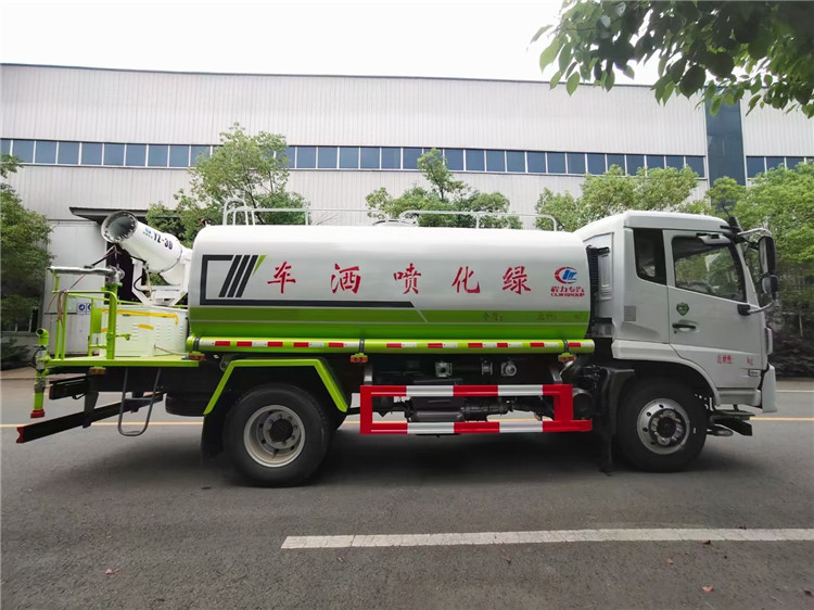 国六福瑞卡12方洒水车带雾炮(绿化喷洒车)底盘配置:采用东风股份原装底盘,东风2020新款福瑞卡排半驾驶室,3950mm轴距,搭载国六(国Ⅵ)德威动力云内170马力柴油发动机,功率125 kw,国六排放,8档带高低档同步器变速箱,9.00R20钢丝胎,250mm双层直通大梁,方向助力,断气刹,日间行车灯,安全带提示,气囊座椅,中控锁,电动门窗,原厂取力器,原厂空调,ABS。 国六福瑞卡12方洒水车带雾炮(绿化喷洒车)专用配置:罐体容积:12 立方,罐体钢板为4mm碳钢Q235材质专用容积板一次成型,罐内隔板具有防波作用,以减轻汽车行驶时罐体液体冲击;配大功率专用洒水泵,泵可自吸自排;整车前冲、后洒、侧喷、后平台带绿化洒水炮,洒水炮可全方位旋转,可连续调成直冲状、大雨、小雨、毛毛雨;前封头带水位计,后平台主管路带1寸浇花接口,后爬梯,带1个消防接头,带1个自流阀,1个过滤装置。国六福瑞卡12方洒水车带雾炮(绿化喷洒车)选装配置:1、可选装气动球阀开关驾驶室内控制;2、可选装后平台带CLW-30、40型雾炮机组 湖北程力国六福瑞卡12方洒水车带雾炮(绿化喷洒车)程力威牌CLW5160GPSDP型绿化喷洒车图片价格: