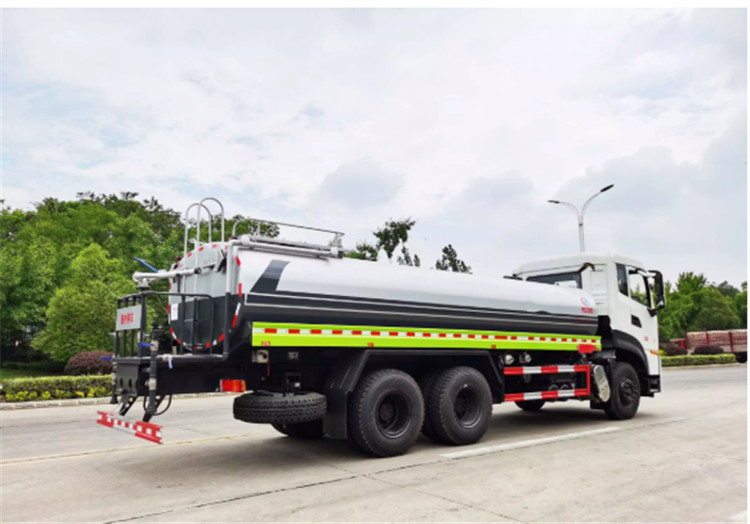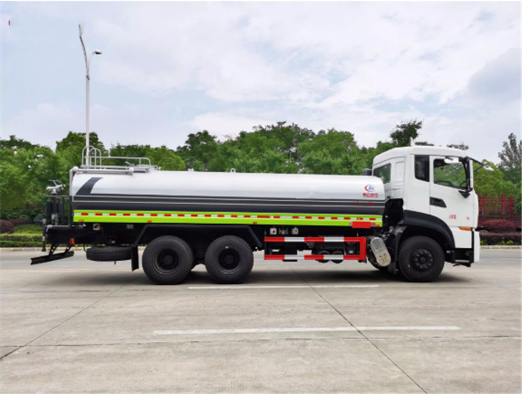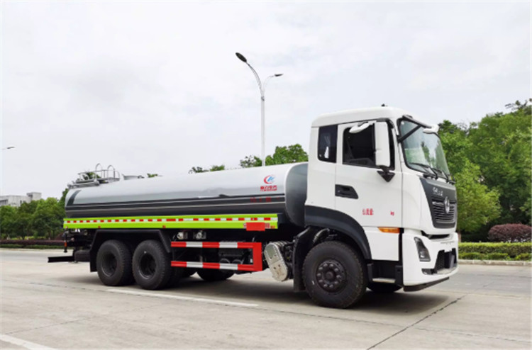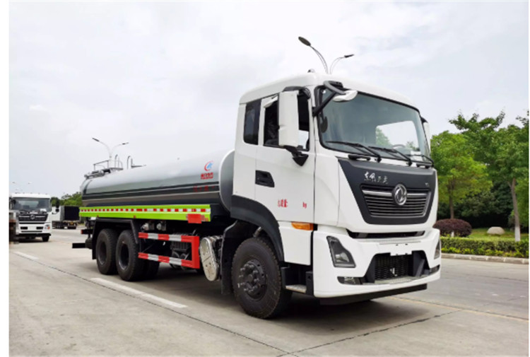 东风天龙KL/VL后双桥洒水车是一款采用国六排放标准东风天龙后双桥原装底盘改装的环卫车,该车配置豪华,驾乘舒适,该车罐体容积:18立方米,标配前冲、后洒、侧喷、后平台高炮,是园林绿化、小区物业、公路养护的常用车型。 国六东风天龙后双桥18方高端洒水车(绿化喷洒车)底盘配置:采用东风天龙后双桥原装底盘,东风天龙豪华驾驶室,4400+1350mm轴距,搭载国六(国Ⅵ)东风康明斯290马力柴油发动机,功率213kw;东风商用DDi350马力柴油发动机,功率257kw,国六排放,陕齿法士特9档变速箱,11.00R20钢丝胎/295真空胎,前桥5T,后桥双10T,方向助力,断气刹,排气制动,原装空调,行驶记录仪,多媒体显示屏,电动门窗,中控锁,气囊座椅,ABS。 国六东风天龙后双桥18方高端洒水车(绿化喷洒车)专用配置:罐体容积:18立方米,罐体钢板为4mm碳钢Q235材质专用容积板一次成型,罐内隔板具有防波作用,以减轻汽车行驶时罐体液体冲击;配大功率专用洒水泵,泵可自吸自排;整车前冲、后洒、侧喷、后平台带绿化洒水炮,洒水炮可全方位旋转,可连续调成直冲状、大雨、小雨、毛毛雨;前封头带水位计,后平台主管路带1寸浇花接口,后爬梯,带1个消防接头,带1个自流阀,1个过滤装置。