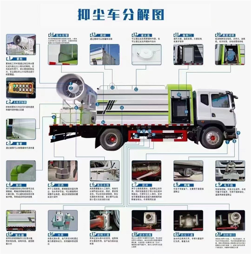 1、整车装备、结构紧凑、布局合理、部件做工精细、产品配置完善、操作性能好。 2、雾炮射程远、覆盖面积大、雾粒细小、与飘起的尘埃接触时,形成一种潮湿雾状体,能快速将尘埃抑制降沉。 3、适用范围广、工作效率高、可边行驶边喷雾、喷雾速度快、对尘埃有较强的穿透力和雾珠附着力、能有效地节约用水量和减少环境污染。 4、遥控/手动兼容、起动快捷、使用安全、灵活方便、性价比高。 5、微电机控制水平旋转,液压马达控制俯仰角度,交换角度速度快。 | 湖北程力国六多利卡8方抑尘车(方罐)程力威牌CLW5120TDYE6型多功能抑尘车图片价格: